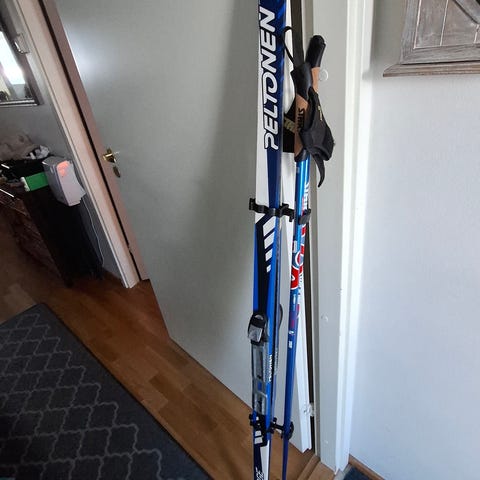 Fischer RCS Universal perinteisen sukset, joissa Rottefella NNN-siteet. Mukana Rex-hiihtosauvat, joissa korkkikahvat ja irrotettavat hihnat. Suksien pituus 152 cm