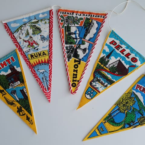 Myös vanhat pienet matkailuviirit.