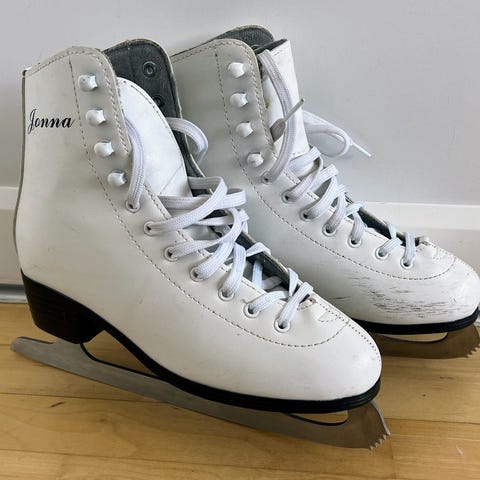 Aliisa taitoluistimet, koko 38, pohjallisen sisäpituus 24 cm. Tekonahkaa, lämmin karvavuori. Terät hyvässä kunnossa. Ulkopinnassa näkyy käytön jälkiä, jotka eivät vaikuta käyttöön.