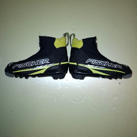 Hyväkuntoiset lasten Fischer XJ Sprint hiihtomonot. Koko on 33 ja sidetyyppi SNS.