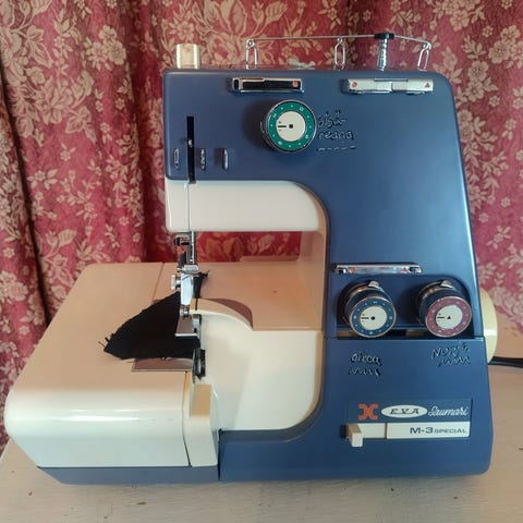 Hyväkuntoinen saumuri, toimii. Langat laitettu valmiiksi. Vain nouto.