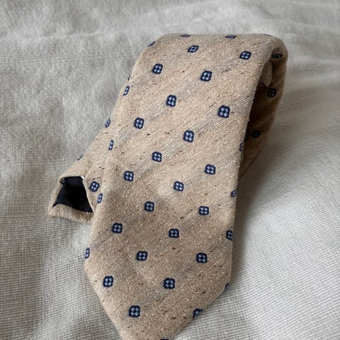 Myydään Suitsupply :n solmio. Kunto kuin uusi. Vinoraitainen, ns. regimental tie malli on klassinen valinta ja solmio toimii hienosti erilaisten irtotakkien tai kesäpukujen, nappikauluspaitojen, tms. kanssa. Silkistä ja puuvillasta kudottu tekstuuri antaa eloa solmiolle, katso kuvat. Made in Italy. Leveys 7,5cm, pituus 150cm. 3 fold & tipped