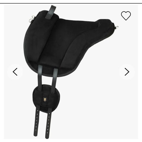 Vaihdettava etukaari. Siirrettävät polvituet. Topattu synteettisellä villalla. Satulan etukaaren koko: Leveä.