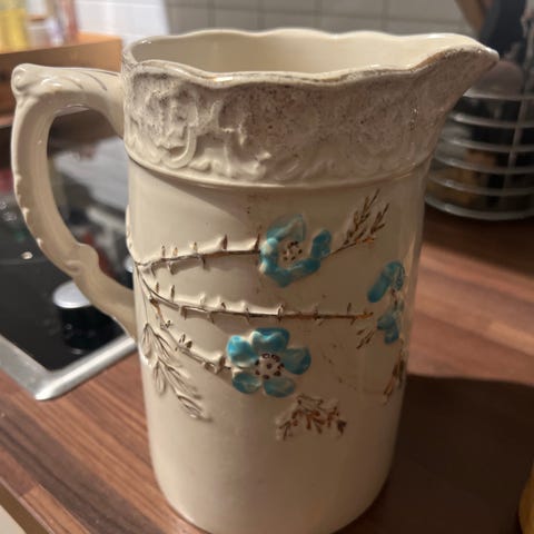 ART Galleriassakin esiintynyt kannu malli .Erityinen ja Euroopassa art galleryssö hinnat n.1500euroa molemmin puolin.Kannussa ei ole mitään halkeamia.Kuka kerää taidetta antiikkia,tilaisuus Ukkini ja isoäitini ostaneet sen art gallerystä.En itse kerää taidetta jollekkin todellinen tilaisuus.Nyt vain 149e!