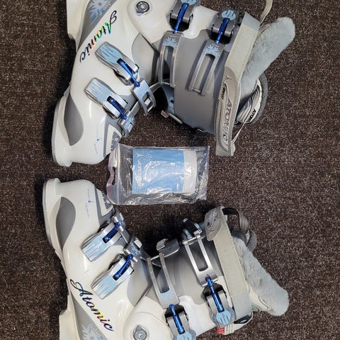 Atomic Edge laskettelumonot. Väri musta/harmaa punaisin yksityiskohdin. Monossa useita solkia ja tarrakiristys varressa. Soveltuu rinnelaskuun ja yleiseen laskettelukäyttöön.