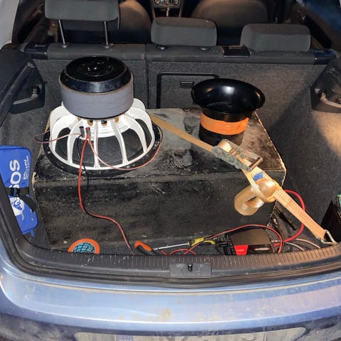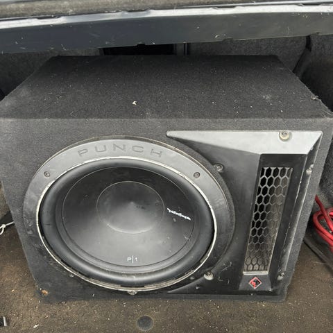 Siitä kuin uusi 12” kotelo. Erittäin sopiva käyttöautoon, ei vie juuri yhtään tilaa. Kiinnitysraudat valmiina paikallaan.