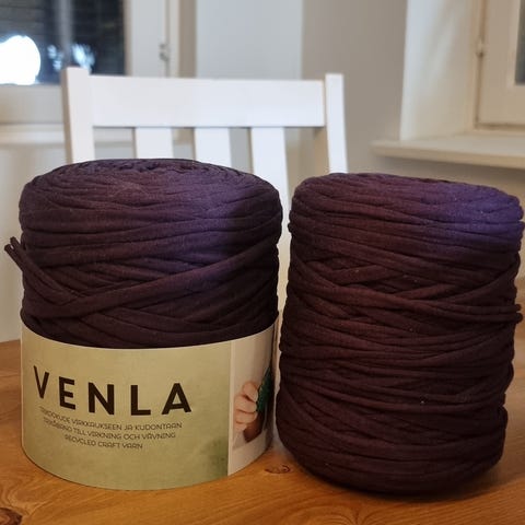 Schachenmayr SMC Viventiy -trikookude. Paketissa useita kerällisiä käyttämätöntä valko–punakuvioitua sekä yksiväristä punaista trikookudetta. Materiaali on 100 % puuvillaa. Soveltuu esimerkiksi virkkaus- ja neuleprojekteihin, kuten koreihin ja sisustustekstiileihin. Yhteensä n 2kg.