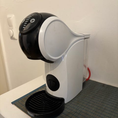 Dolce Gusto kapselikeitin kotikäyttöön. Laitteessa on vesitankki takana ja tippakaukalo edessä. Yläosassa on painikkeet juoman määrän ja lämpötilan säätöön sekä merkkivalot käytön seurantaan. Sopii Dolce Gusto -kahvikapseleille erilaisten kuumien juomien valmistukseen, kuten kahvi ja kaakao. Väri harmaa/musta, materiaali pääosin muovia.