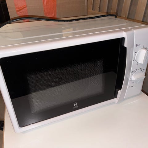 Scandomestic mikroaaltouuni vaalealla etupaneelilla. Laitteessa on digitaalinen näyttö, useita painikkeita eri toiminnoille sekä pyöritettävä säätönuppi tehon ja ajan valintaan. Soveltuu ruoan lämmittämiseen ja sulattamiseen keittiökäytössä.