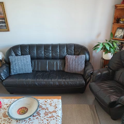 Myydään kolmen istuttava sohva ja kaksi nojatuolia. Kissan raapimisjälkiä sohvien sivuissa. Sohvat hyvä runkoisia. Voidaan myydä erikseen tai kaikki kerralla. Nouto tai mahdollista kuljettaa lähialueelle. Hinta 100 €/tee tarjous.