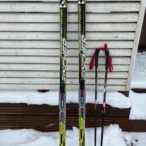 Sukset pituus 130 ja sauvat 95. Monot kokoa 32.