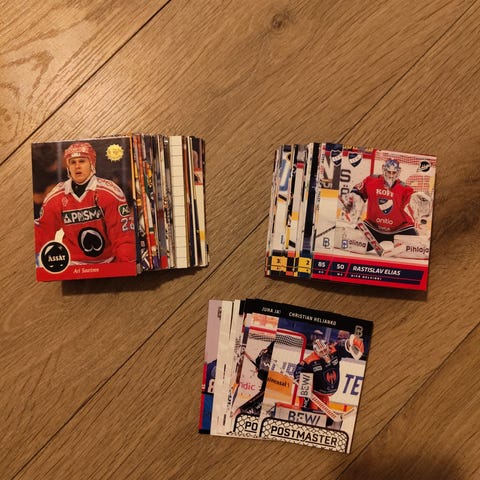 Sekalainen erä juuri pakasta avattuja liiga-jääkiekkokortteja. Kaikki kortit ovat erilaisia, sisältäen 68 kpl peruskortteja eri joukkueista sekä kuvassa näkyvät 15 kpl pikkuerkkaa.