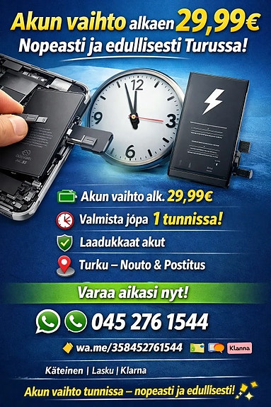 🔋 Akun kunto: 100% – Erinomainen akku, ei tarvetta vaihdolle!