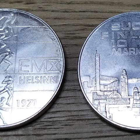 94 hopeakolikot*Suomi 10 mk, 1971 kymmenes Euro yleisurheilun mestaruuskilpailut
