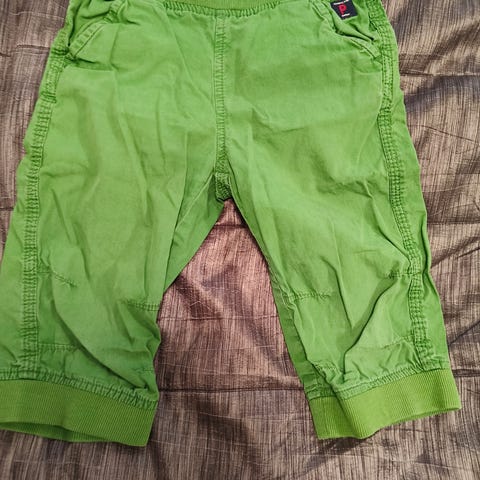 Hennon vaaleanvihreät PoP-legginsit kokoa 116. Ostettu uutena ja yhdellä lapsella käytetty. Jos ihan läheltä katsoo, voi juuri ja juuri nähdä polvissa aavistuksen pehmentymää. Tahroja en löytänyt arasta väristä huolimatta, enkä muutakaan moitittavaa. Vyötäröllä kiristyskuminauha.