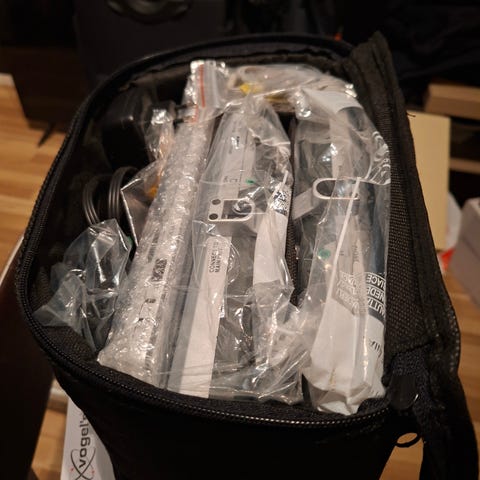 Kantolaukku: Tukeva musta laukku, jossa koko setti pysyy tallessa ja helposti mukana.