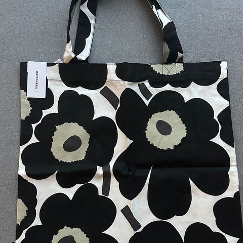 Marimekko Unikko kangaskassi mustavalkoinen unisex