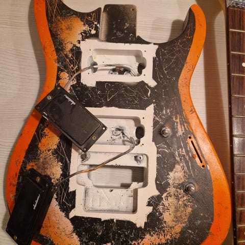 Myydään kuvan vanha Strat-tyyppinen kitaran body. Ostettu aikanaan Muusikoiden.netin kimppatilauksessa ulkomailta ja maannut itsellä varastossa varmaan noin 20 vuotta. Ei ole koskaan ollut käytössä, mutta ruma maalipinta saatu pelleiltyä aikaiseksi eli kaipaa hiontaa ja mahdollista uutta pintakäsittelyä. Kaulataskun leveys noin 56 mm mitattuna huonolla mittanauhalla eli vaikuttanee aika standardilta straton mitalta. Sopii hyvin DIY-projektiin tai custom-kitaran pohjaksi.