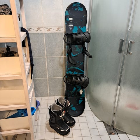 Burton lumilautapaketti, johon kuuluu värikäs 142 cm lumilauta, valkoiset Burton-siteet, valkoiset Burton-lumilautakengät sekä valkoinen kypärä ja lasit. Lisäksi mukaan myös lumilautapussi. Lumilauta on ollut käytössä 5-10 laskupäivänä käytössä, ei ole huollettu, pohjan reunoista väri vähän haalistunut eli huolto voisi pian olla paikallaan. Yleisilmeeltään kyllä erittäin hyvä, pienistä moitteista kuvat. Hyvä lauta aloittelijallekin, ei ei liian jäykkä. Lumilautakengissä sisäreunassa ja nauhojen alla vähän tahraa. Kengät kokoa 40,5, ollut 39 jalassa käytössä. Kypärä 54/55 päähän sopiva. Ensisijaisesti myyn settinä.