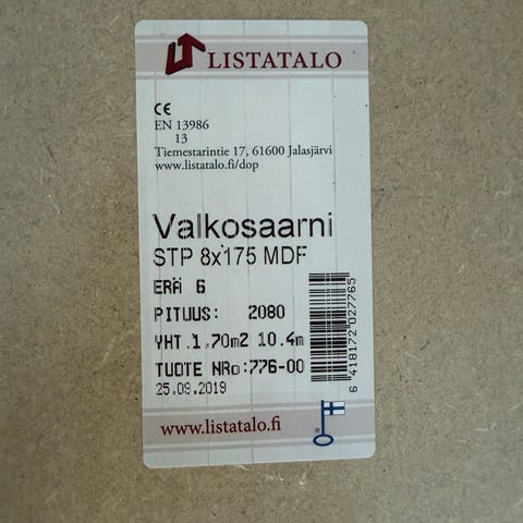 Sisustupaneeli cello 13x120x2370mm stv puhdas valkoinen. Paketissa 1.26m2. Myytävänä 1pkt + 2 lautaa.