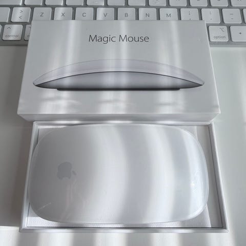 Käytännössä täysin uusi Apple magic mouse. Mukana laatikko, johto ja itse hiiri. Tuote ostettu verkkokaupasta 2.1.2026.