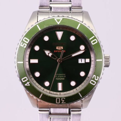 —// KUVAUS //—** Made in Japan ** Malli: Seiko 5 Sports SRP605J2 Blue Dial Men's Automatic Professional DiverAine at: Ruostumaton teräs Kellon kuoriväri: SininenKellon koko: 43 mm (kahvan painamalla ei sisälly kruunua)Käyttö: Enintään 20,0 cm ranteeseen.Liikke: Seiko 4R36 AutomaattiliikeLämpövarasto/Patoutus: 40 tuntiaToiminnot: Aika, vääntyvää sukellusrenkaan kiertoa, automaattinen ja manuaalinen viritys, päiväys/kuukauden näyttö, kaksikielinen päiväpyörä, hakkaus, viistohäntäiset kädet, hehkuvat kädet ja tuntimerkit, —// TOIMITUS SISÄLTÖ //—Alkuperäinen boxi: EiAlkuperäiset todistukset: Ei—// TILANNE //—Kannen kulutus: *(*) [pienellä kulutuksella kuoren päällä, joitakin hiusviivoja ja pieniä naarmuja. Pieni kolhu ylävasemmalla korvakkeessa]Kannen takakannen kulutus: *(*) [näyttötakakansi, pienet hiusviivat]Kiteen/Lasin kulutus: - (*) [lähes virheetön]Hälystä: - Kädet: - Kellotaulun reunan kulutus: *(*) [Pieniä kulutuksia kehykässä hiusviivoineen]Kruunun kulutus: * [minimaalinen hiusviivoitus]Rannekkeen tai hihnan (koko yllä mainittu) : *(*) [Seiko sininen kumi-ranneke, Seiko S/S solki]TILANNE-ARVIOINTI STANDARDI:- None (Paras)* Huomioitava** Pieni*** Keskinkertainen**** Raskas***** Vaurioitunut (Huonoin)(*) puolikas tähti / välissä oleva kunto — // YLEISINEN ARVIO //—ARVIO: A+ / AARVIO-OPAS:N - Uusi ilman kulumismerkkejä, tai käyttämätön.S - Lähellä mint Condition, pienet kulumisen merkit.A+ - Erittäin hyvä kunto, käytetty vähän kulumisen merkkejä.A - Hyvässä kunnossa kevyillä kulumisen tai naarmujen merkeillä.B+ - Kohtuullisessa kunnossa ilmeisiä kulumisen merkkejä.B - Huonossa kunnossa raskaita kulumismerkkejä.V - Yli 20 vuotta vanha ja vintagemainen kunto ilmeisine kulumismerkkeineen.ND - Pelastustilassa, toimintahäiriö tai huoltotarpeessa. Saattaa puuttua joitakin osia.—// SHIPPU- TAPA //—PALVELIJA: FedEx Economy tai vastaava—[[[ MUUTOKSIA ASIAKKAALLE ]]]—[KUVAT]- Kaikki kuvat eivät ole retussoituja (paitsi sarjanumerot, jotka on piilotettu turvallisuussyistä). Kaikki kuvaustekstissä mainitsemattomat viat, jotka näkyvät kuvissa, katsotaan kuvauksessa olevan. Kuvat puhuvat puolestansa, joten pyydämme tarkistamaan kuvat huolellisesti ennen tarjouksen tekemistä, sillä ne muodostavat olennaisen osan kuvausta. Arvostan asiakassuhteitani, joten en halua aiheuttaa sinulle pettymyksiä vastaanottamisen yhteydessä.[TARKKUUS]- Tarkkuus testataan jokaiselta kellolta vaakasuuntaisesta asennosta (levitettynä kellotaulu ylöspäin) täysin vetreytyneessä varastossa, ja katsotaan tyydyttäväksi ajan pitämiseksi ennen lähettämistä. Tarkkuuteen voivat vaikuttaa mm. ranteeseen joutuminen ajassa, käsin ja ranteen liike sekä jousen jännitys. Yli 10 vuotta vanhat kellot voivat kokea suuremman tarkkuusvaihtelun ja epäjohdonmukaisuuden mekaanisen kulumisen vuoksi.[TÄYDENTÄVYYDEN[T]- Yritän merkitä kaikki kiertoon tulevat lisävarusteet, jotka pystyn tunnistamaan, parhaan tietämyksen mukaan. Arvioi tuote kuvat huomioiden, sillä ne on otettu itse tuotteesta, jonka aiot vastaanottaa. Kirjallinen kuvaus on vain lisäapu, kun kuvia ei voida näyttää vikaa täydellisesti. (poikkeuksena joitain uudenveroisia tuotteita, joista kuvat voivat olla peräisin aiemmista listauksista).[KELLONHOITO-OHJE]- Kelloa ei suositella käytettäväksi suihkussa tai kylvyssä. Kuuma vesi ja saippua voivat vaurioittaa kellon kumikierukkia ja aih