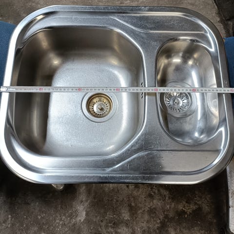 Teräksinen kaksialtainen keittiöallas ja taso