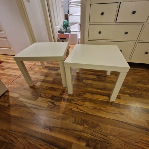 IKEA lipastot 2 kpl, joissa kummassakin 2 laatikkoa. Väri tummanruskea ulkopuolelta ja valkoinen laatikoiden sisäpuolelta. Mitat noin 40 cm leveys, 55 cm korkeus ja 48 cm syvyys. Sopii esimerkiksi yöpöydäksi tai pieneen säilytykseen makuuhuoneessa tai olohuoneessa. Kansilevyissä pieniä käytön jälkiä, ns. murtumia kansilevyn takaosassa. Toisen lipaston ylälaatikko vähän jäykempi avata kuin muuta laatikot, mutta avautuu hyvin. Hinta 5e/kpl. Vain nouto Helsingin Viikinmäestä.