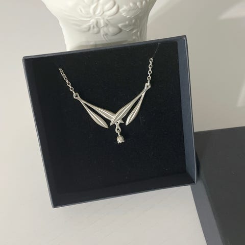 Kaulakorussa keinahtelee pieni kukkahela, joissa toistuu kansalliskukkamme pienten kellokukkien muoto.