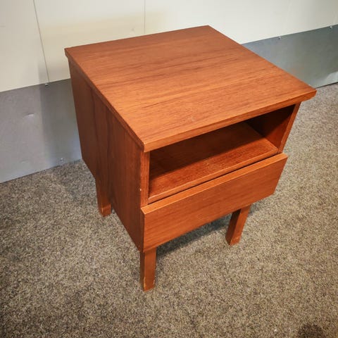 Hienokuntoinen uniikki yöpöytä/sivupöytä. Maalattu mineraalimaalilla, sävynä Shade Green.