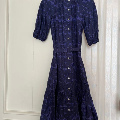 Marimekko Kioski naisten paita. Koko S. Väri sininen. Materiaali puuvilla. Edessä pieni kukkakirjailu. Pitkähihainen, pyöreä pääntie. Soveltuu arkikäyttöön ja kerrospukeutumiseen.