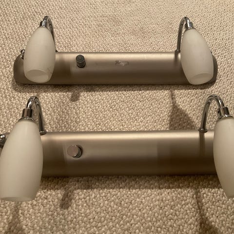 Myynnissä kaksi kappaletta seinävalaisimia. Sopivat esimerkiksi yövaloiksi. Hinta yhteensä 10€.