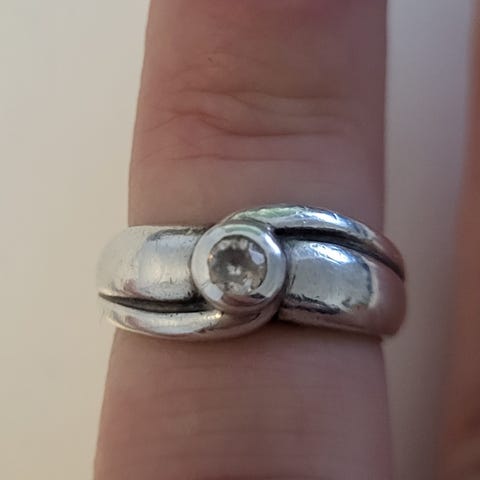 Hopeasormus koko 16. Hieman pyöreys kärsinyt ja kuviot kuluneet. Nouto Korsosta, Vantaalta tai ostaja maksaa postikulut.