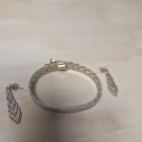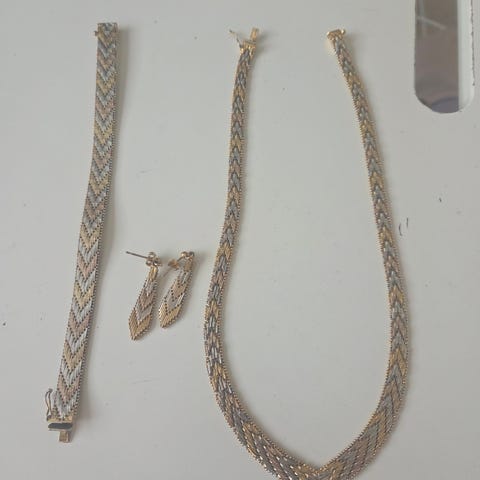 Milor Hopea koru setti. Riccio tyylinen kullattu ruusu ja keltakullalla
