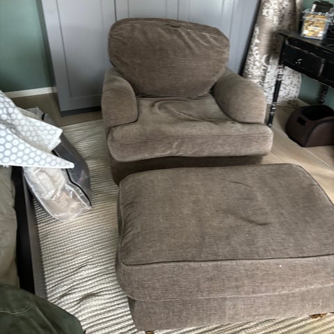 Annetaan korkeaselkäinen noja- / lepotuoli ja rahi. Tuolin ottaja vastaa kaikista siirroista ja kuljetuksista. Siirtoapua en pysty antamaan.