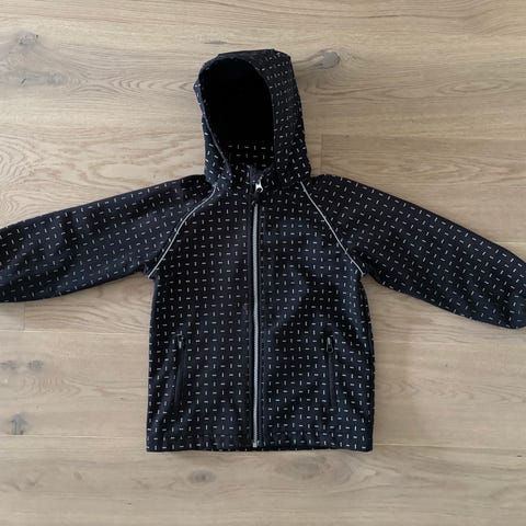 Pientä tummentumaa hihoissa sekä vetoketju lähtenyt purkautumaan, helppo korjata.
