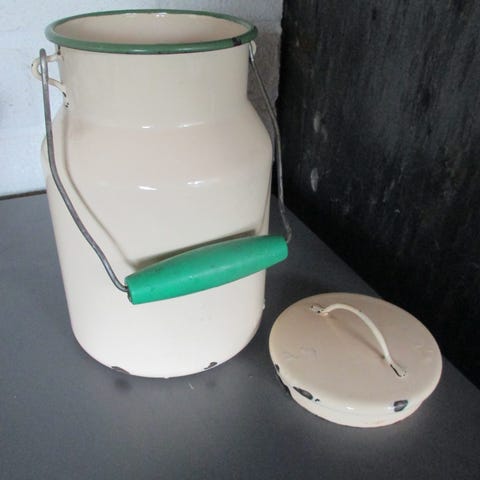 Hempällä kukkakuviolla koristeltu leveä suinen kannu. Vetoisuus 1 litra