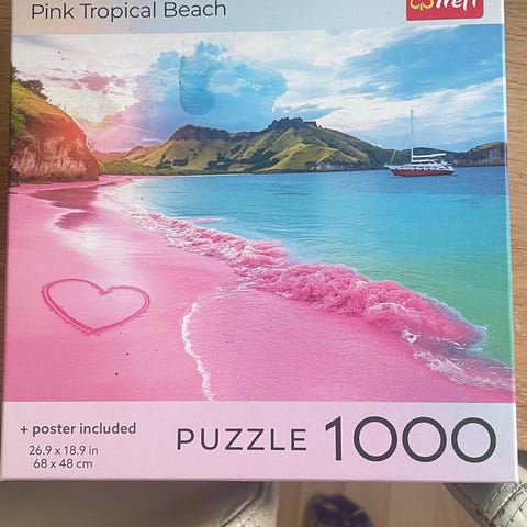 Palapeli, jossa kuvana gepardi kukkaniityllä vuoristomaisemassa. Kerran koottu, 1000 palaa.