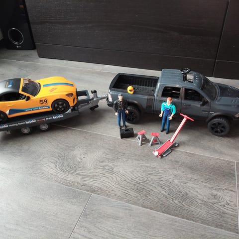 Bruder Liebherr nosturiauto. Siistikuntoinen, pienellä puomivialla. Ei haittaa leikkimistä, mutta ei ole ihan täydellinen.