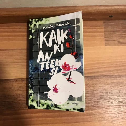 Laura Manninen: Kaikki anteeksi:Kun täydellisestä miehestä kuoriutuu manipuloiva ja väkivaltainen vainoaja – Laura Mannisen omakohtainen teos avaa perheväkivallan todellisuutta.Laura, neljääkymmentä lähestyvä vahvatahtoinen feministi ihastuu Mikkoon, joka on monessa mielessä täydellinen: hurmaava, kohtelias, herkkä ja sympaattisesti oikutteleva mies.Vähitellen Laura, joka ei ole koskaan haaveillut lapsista, huomaa pyörittävänsä Mikon kanssa kolmilapsisen uusperheen arkea. On koira, omenapuut ja kauniisti vanhentunut omakotitalo.Jonkin aikaa kaikki näyttää täydelliseltä.