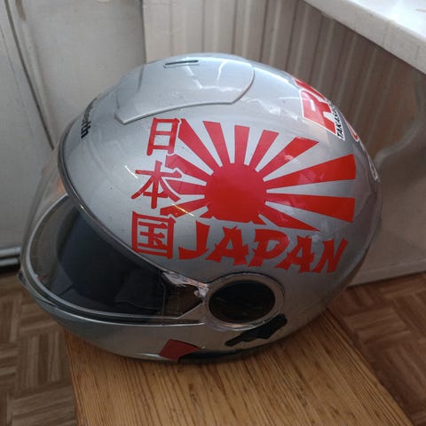 Schuberth C2 -moottoripyöräkypärä, koko S 54/55. Väri hopea, leukaosa on avattava, erillinen aurinkovisiiri. Kolaroimaton. Visiirissä käytön jälkiä.