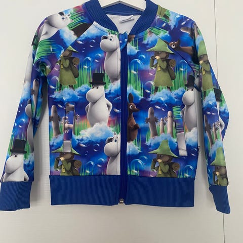 Moomin by martinex verkka-asu / verryttelupuku koossa 92. Tahrainen mutta ehjä. Päikky/rymykäyttöön vielä ihan kelvollinen. Mielestäni housut hieman pientä kokoa.