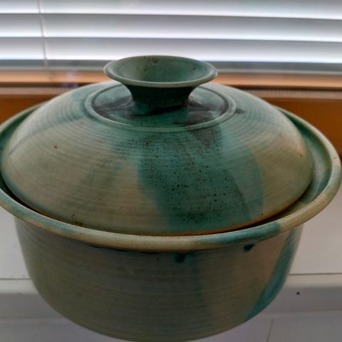 Siisti kannella oleva uunivuoka täysin ehjä