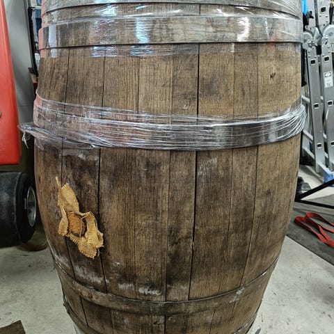 Vanha viinitynnyri,ollut koristeena mancavessa.