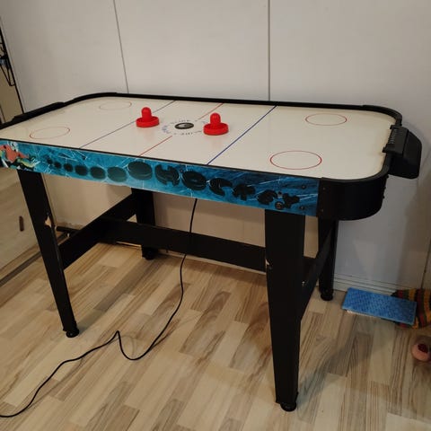 Julkiseen tilaan tarkoitettu ilmakiekkopöytä. "Mailat" on mutta kiekot puuttuu. Painaa reilut 200kg