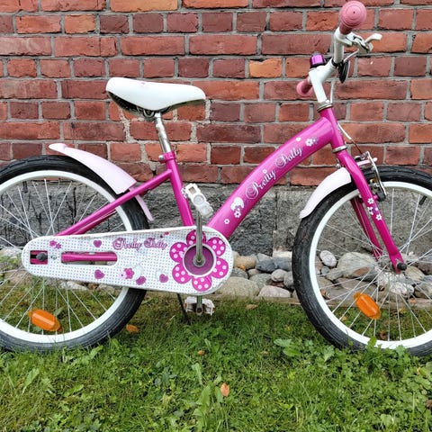 Tyttöjen Jupiter sweetie 12” polkupyörä, edelleen toimiva ja perus siisti. Mukaan työntö aisa, apupyörät ja kori.