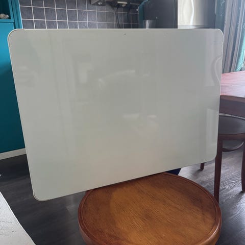 Ikean Elloven näyttökoroke. Pientä jälkeä mustassa metalliosassa (kuva), mutta yleisilme siisti. Lisätiedot linkistä: ELLOVEN näyttökoroke ja laatikko, antrasiitti - IKEA https://share.google/5nOWvLFnHqPTovJ6T