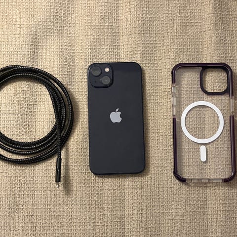 Apple iPhone 13 älypuhelin, tallennustila 128 GB. Väri vaaleanpunainen. Näyttö ja takalasi ehjät. Kulmassa jälki joka näkyy kuvassa.
