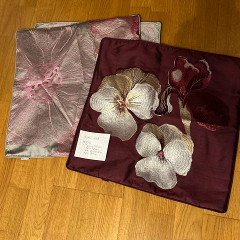 Silkkityynypäälliset Pentik 2 kpl. Relief-kirjonta. Mitat 42x42cm. Siistit ja virheettömät.