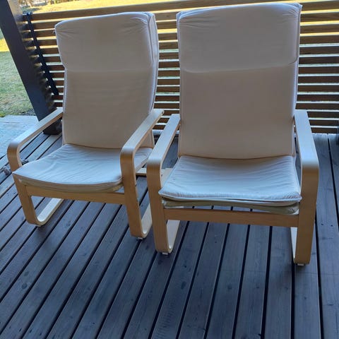 Niemen kalusteen valmistamat nojatuolit. Nojatuolit, jossa korkea selkänoja ja erillinen niskatuki. Verhoiluna punainen kangas, joka peittää istuimen ja selkänojan. Rungossa ja käsinojissa vaalea Tuolit tarjoavat hyvän tuen selälle ja niskalle istuttaessa. Vain nouto Seinäjoelta.